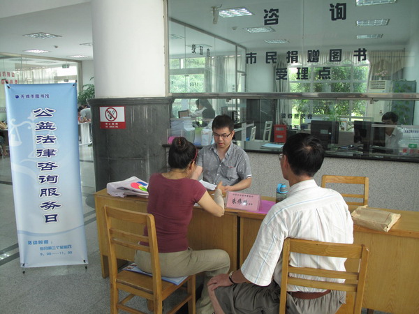 7月19日,“公益法律咨询服务日”活动在我馆一楼大厅举行,由江苏汇方律师事务所律师朱伟鹏为市民做义务法律咨询。朱律师就市民提出的各类法律相关问题进行了详尽的解答。