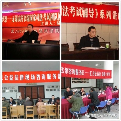 回顾往昔,十五年公益行历历在目!初始于2005年伊始在无锡市图书馆汇集了一批来自八方的青年法律专业人才,探索以公益法律咨询活动的形式,为读者、市民提供服务,经筹备选定当年的3月5日学雷锋日,拉开了公益法律的序幕。活动一经推出就得到广大读者与市民的好评。后经过调研与认真组织,组建了以陆军律师等为主要成员的“锡图公益法律志愿者团队”,自2006年4月起,于每月第三个星期六上午在图书馆一楼共享大厅,定期开展“公益法律咨询服务日”活动。2012年1月起至今,由“锡图公益法律志愿者团队” 陆军律师等骨干成员发展成立的江苏汇方律师事务所,进一步发展、壮大公益法律志愿服务队伍,常年坚持开展公益法律咨询服务,义务解答市民关心的法律问题,指导市民依法维护权益、表达诉求、化解纠纷,这么多年的公益法律中,印象最深刻是在2008年春节,年初六下着鹅毛大雪,大厅正进行着春节期间的特别公益法律活动。一位小伙子准备春节后对单位维权,经过解答,这位年轻人明白了自己对劳动法、合同法存在的误解。他经过学习进而对劳动法、合同法产生兴趣,参加了司法考试进而成为了一名律师。有时,不经意间就帮助了一个人,化解了一场纠纷!